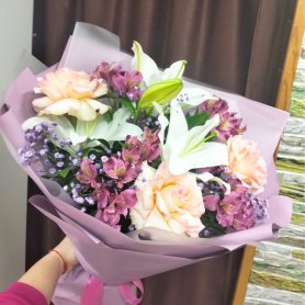 Букет из роз, альстромнрия и хризантема «Воплощение мечты»